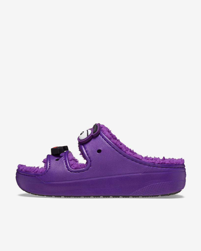 Inspired by everyone’s purple bestie, these sandals lined in faux fur will have you feeling like you’re walking a day in Grimace’s shoes. The Grimace Cozzzy Sandal features his loveable expression on the straps, comes with his favorite treat – a shake in the form of a Jibbitz™ charm.