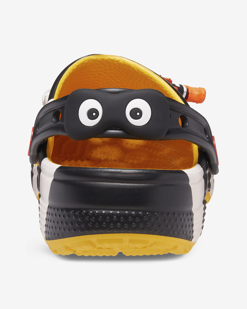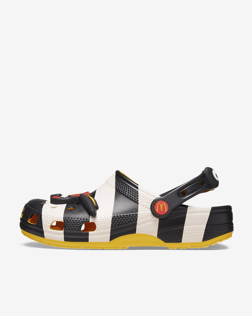 Feel as stealthy as the Hamburglar himself with these Classic Clogs in the Hamburglar’s famous black and white stripes and Jibbitz™ charms featuring his go-to order (a hamburger, of course).