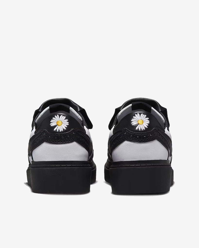 Visionary artist G-Dragon delivers his signature style once again, this time in black and white. The Nike Kwondo 1 is a masterclass in contrast, harnessing a classic dress shoe aesthetic for the streets. The crafted wingtip upper sports intricate brogue detailing and a removable lace shroud. Embroidered daisies decorate the heel and signature branding pushes the look one step further.